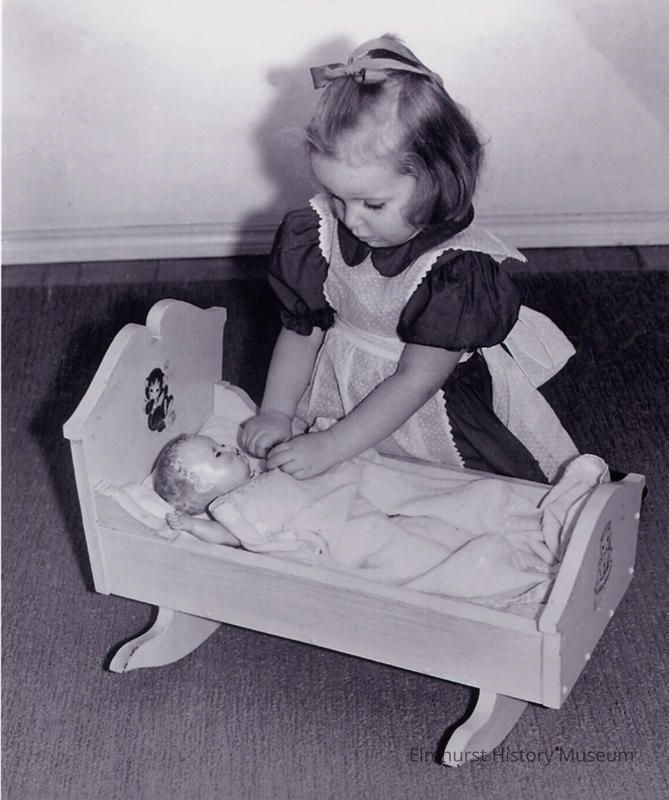 Image used to advertise Product #1164 Rock-a-Bye-Baby Doll Cradle in Craft Pattern Catalog 1958Photograph Details