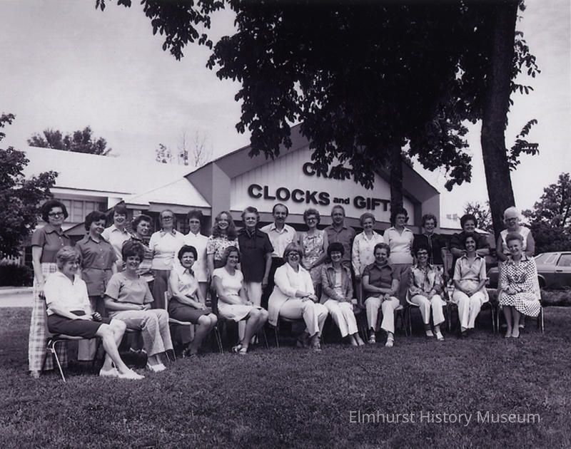 Former employees of Craft Patterns and Craft Products in front of the Elmhurst store on the northeast corner of North Avenue and Route 83.Photograph Details