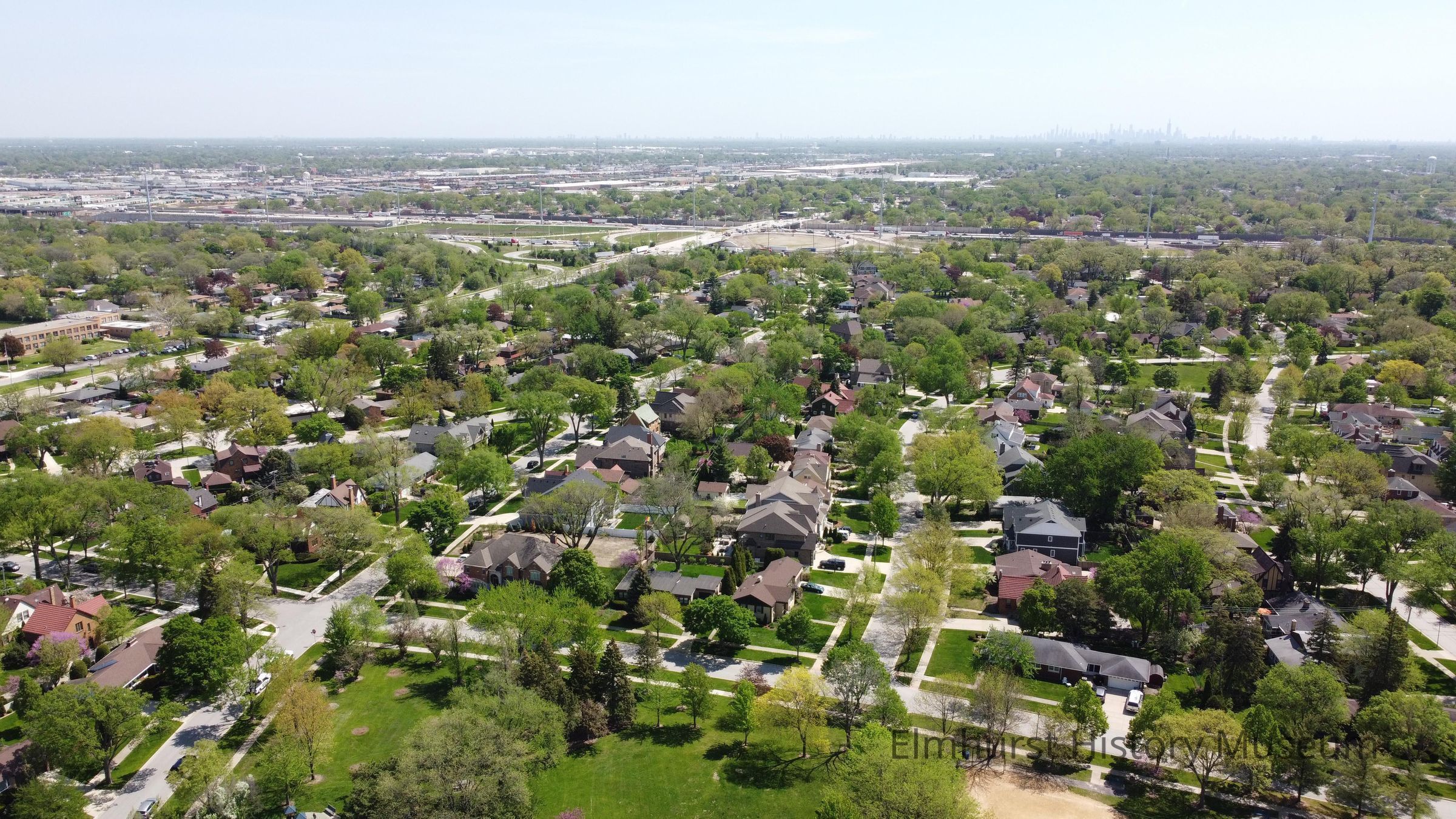 Aerial view of Crescent Park Subdivision, looking east towards the St. Charles Road interchange on I-290.Photograph Details