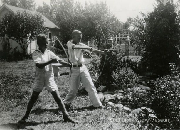Brothers Donald and Robert Eckwall with bows and arrows.Photograph Details