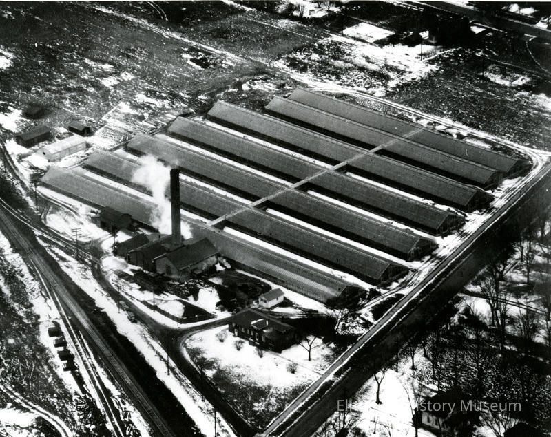 Aerial view of Dramm greenhouses at 601 S. York Street.Photograph Details
