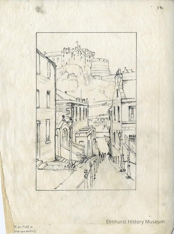 Print, drawing on paper by Lee Sturges, EDINBURGH CASTLE STUDY