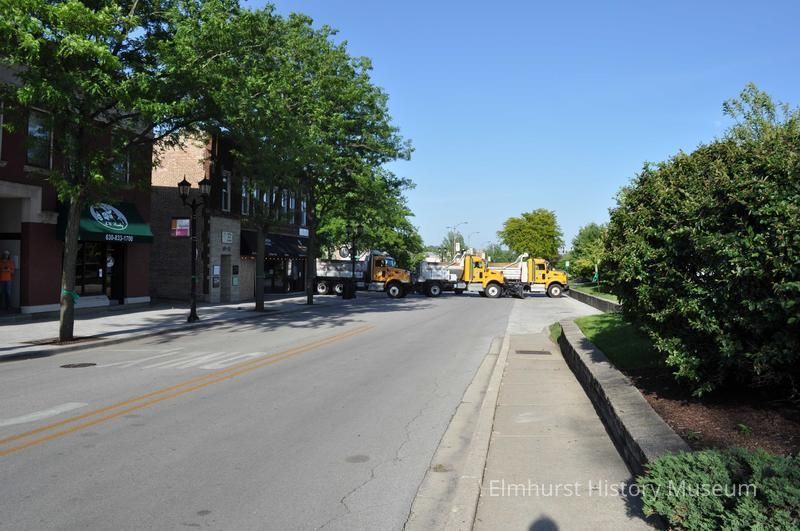 Police close E. First Street in front of the police station with Public Works trucks in anticipation of a police brutality protest related to the killing of George Floyd by a police officer in Minnesota on May 25, 2020.Photograph Details