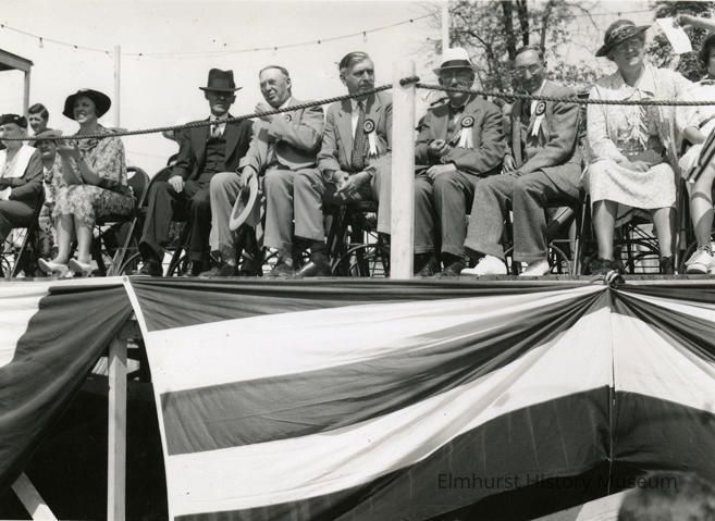 Local dignitaries sit on the reviewing stand at the Elmhurst Centennial parade