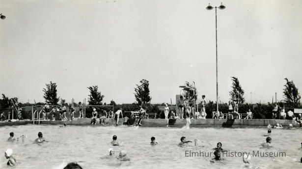 Written in blue on back: 7/7/40 / Swimming pool / Elmhurst, Ill
