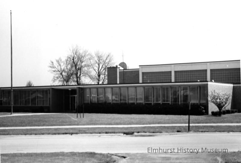 On back: Elmhurst Public Library / Edison School - Fair Av. & Huntington Lane / Taken May 21, 1966 by R. L. Mahon with Kodak Retinette (45mm lens) / Roll 3, Frame 14 - Panatomic X Film