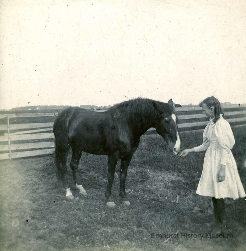 Edna Fischer and her horse Frankie at Fischer Farm on Grand Avenue.Photograph Details