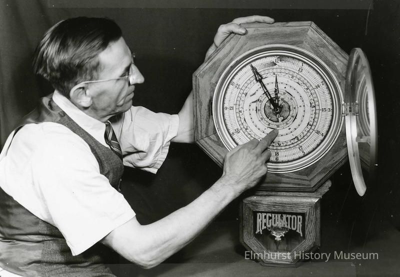 Edward H. Werner with his invention, the Universal Timer