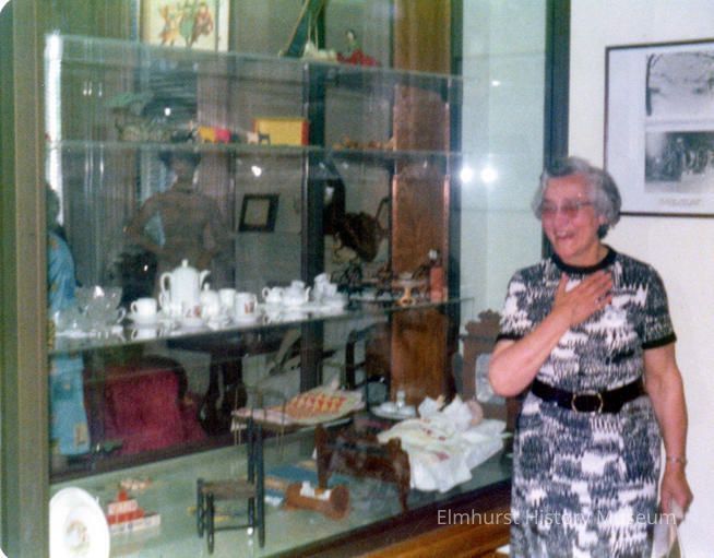Mrs. Ruth Soukup viewing the exhibit in the newly-relocation Elmhurst Historical Museum in the Glos MansionPhotograph Details