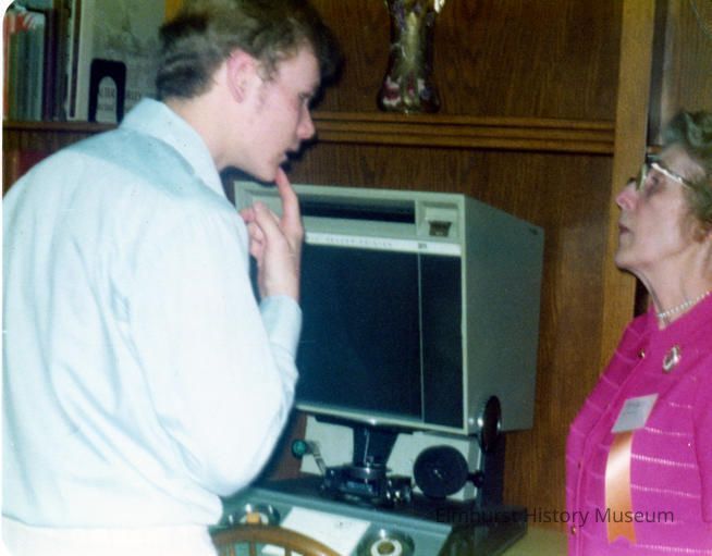 Elmhurst Historical Commissioner Ruth Strand and a guest at the opening of Elmhurst Historical Museum in the Glos MansionPhotograph Details