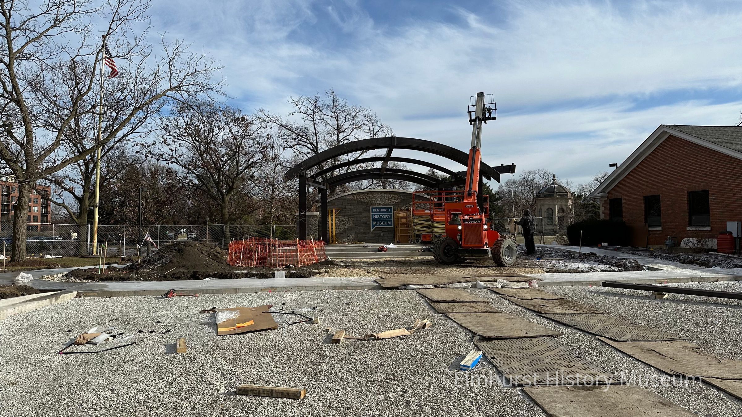 Construction of the performance space between the Elmhurst History Museum and the EHM Education Center.Photograph Details