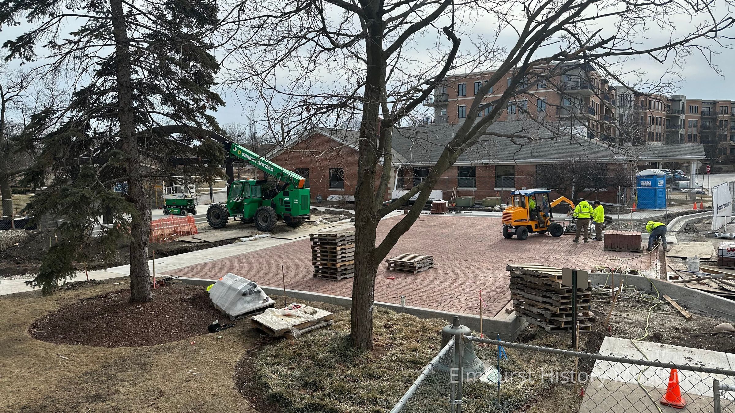 Construction of the performance space between the Elmhurst History Museum and the EHM Education Center.Photograph Details
