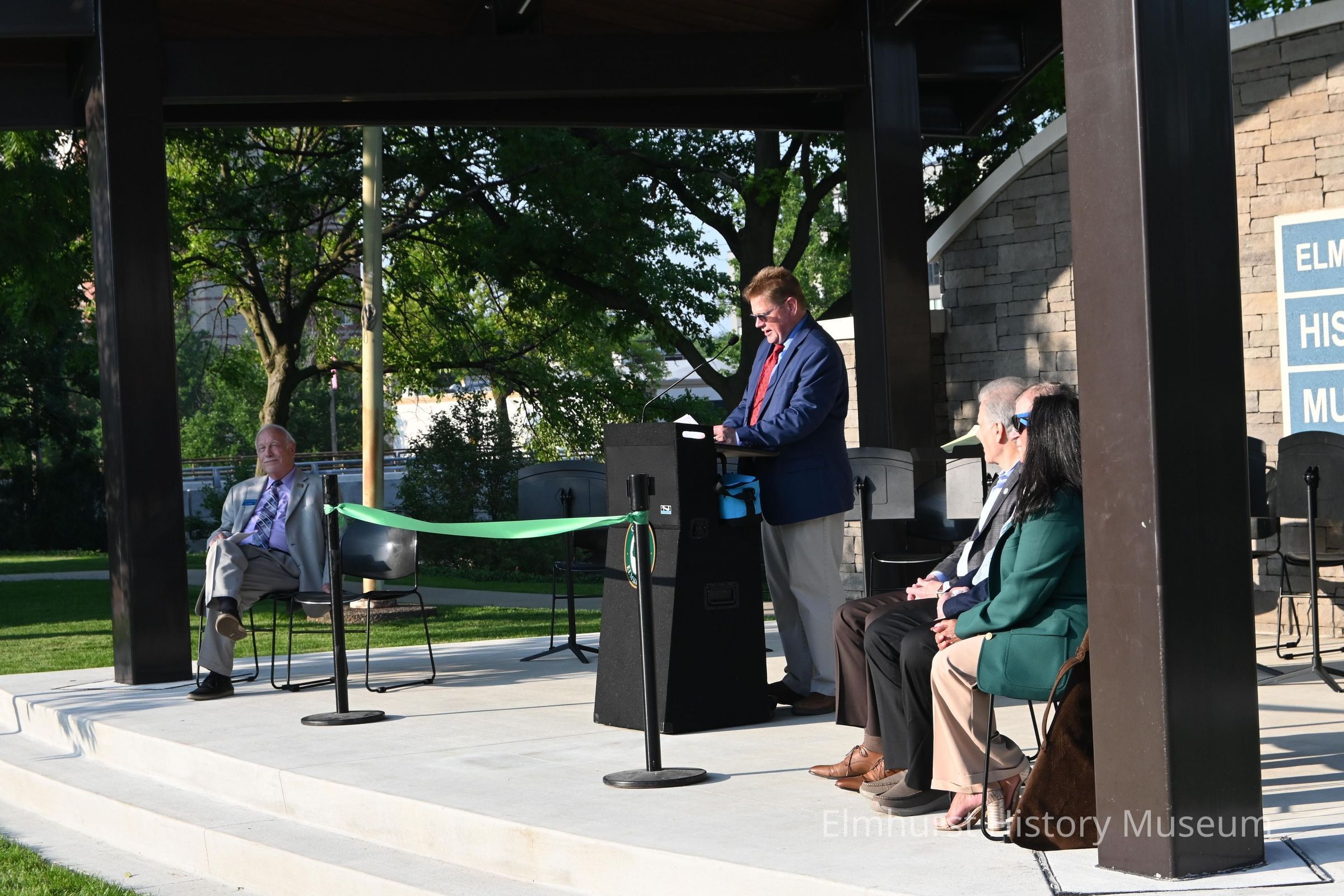 Executive director Dave Oberg speaks at the opening dedication ceremony of the Elmhurst History Museum's performance space.Photograph Details
