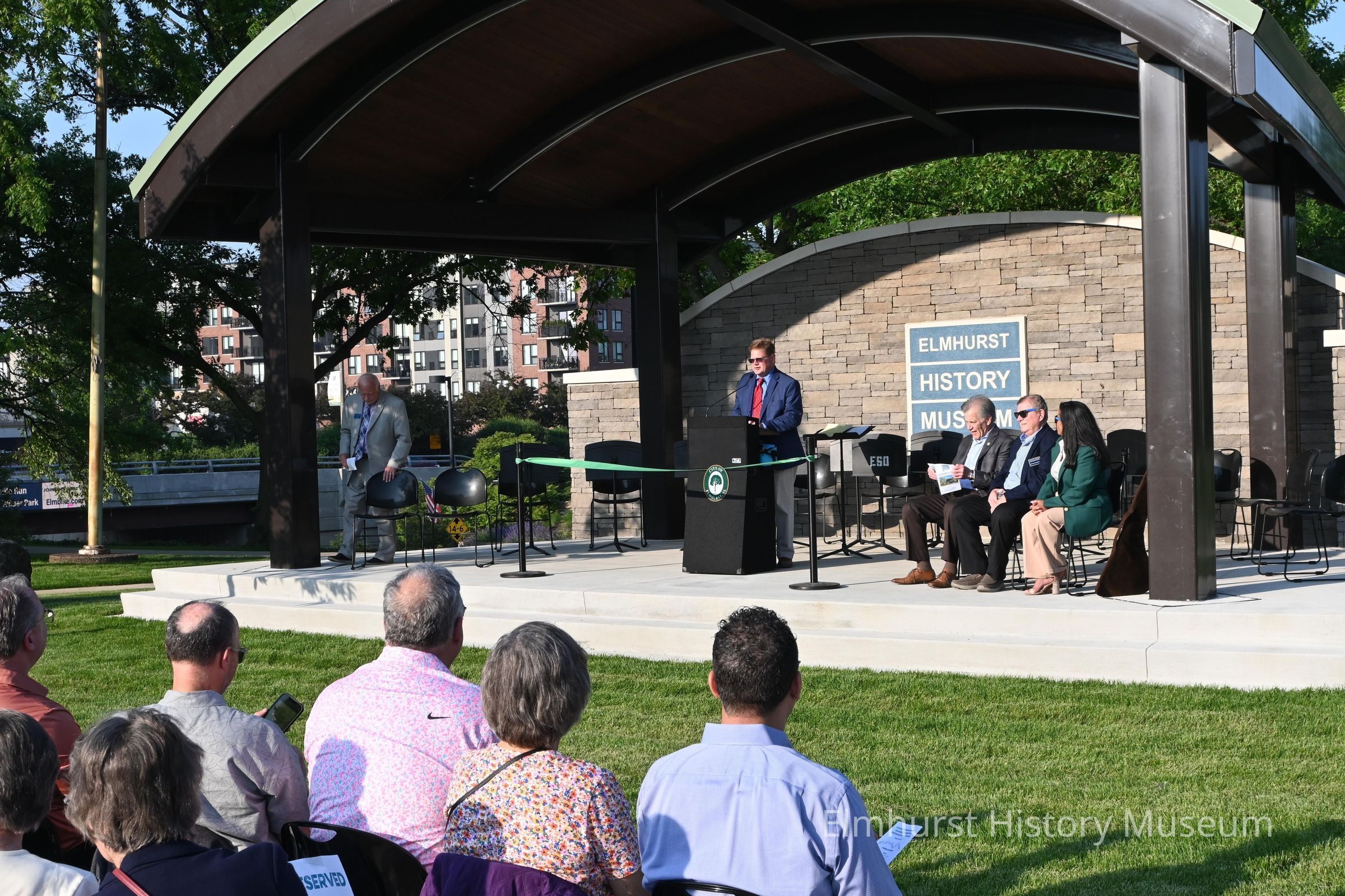 Executive director Dave Oberg speaks at the opening dedication ceremony of the Elmhurst History Museum's performance space.Photograph Details