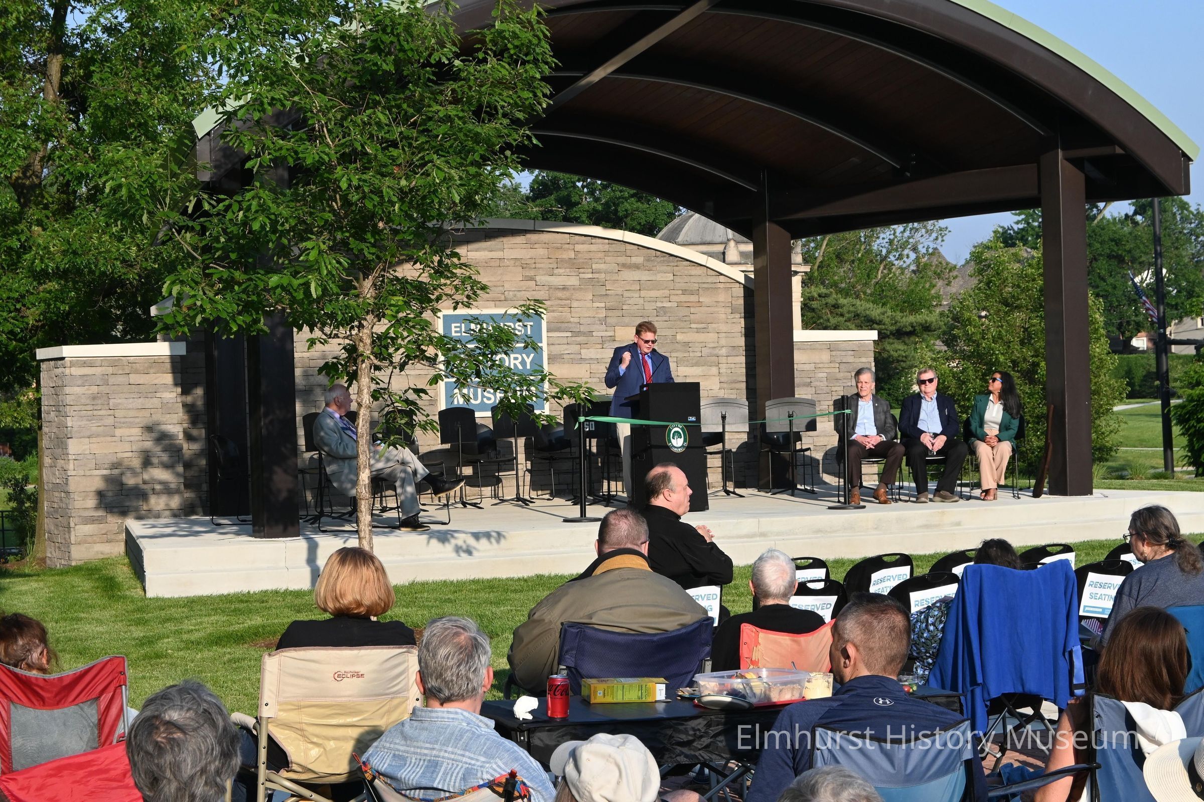 Executive director Dave Oberg speaks at the opening dedication ceremony of the Elmhurst History Museum's performance space.Photograph Details
