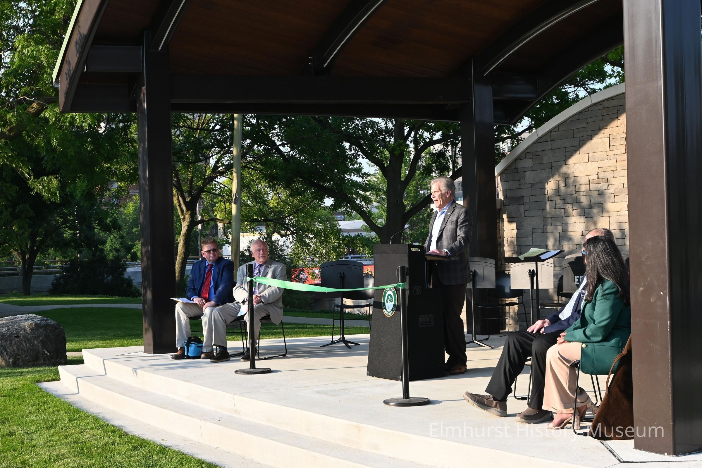 Elmhurst mayor Scott Levin speaks at the opening dedication ceremony of the Elmhurst History Museum's performance space.Photograph Details