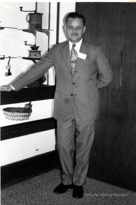 George Vann, president of Elmhurst Historical Society, attending EHM's Pre-Opening Tour of the exhibitsPhotograph Details