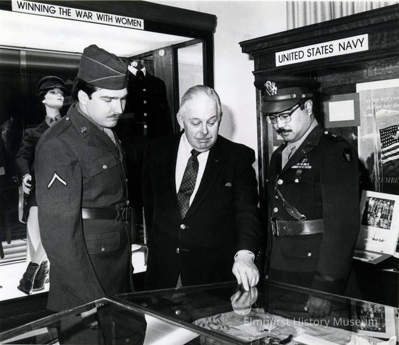 WWII exhibit opening reception, with volunteers Dave S Earl and Steve Earl (in uniform)Photograph Details