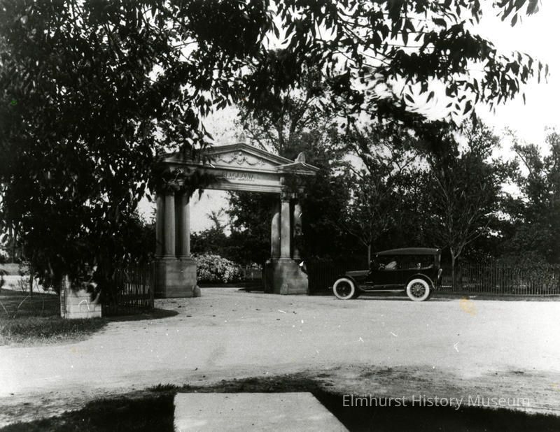 Early scene of the entrance to Elm Lawn Cemetery on E. Lake Street.