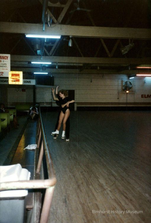 Jules Gianneschi and her skating partner on the rotunda floor of the Elm Skating Club, at Butterfield and Roosevelt Road.