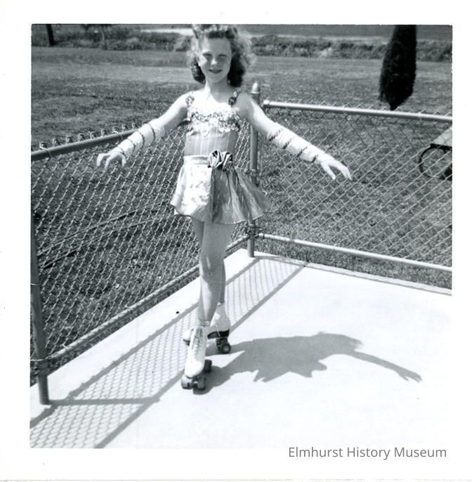 Skater Sharon Rosenbach at a competition at the Elm Skate Rink at Roosevelt Road and Butterfield.
