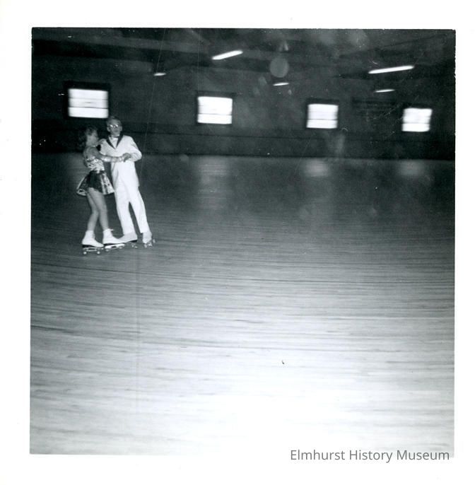 Skaters Randy Johnson and Sharon Rosenbach at a competition at the Elm Skate Rink at Roosevelt Road and Butterfield.Photograph Details