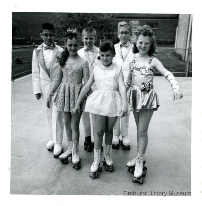 A group of skaters at a competition at the Elm Skate Rink at Roosevelt Road and Butterfield.Photograph Details