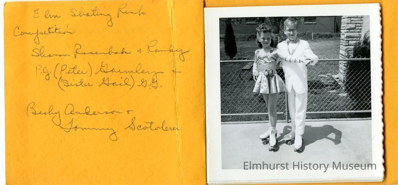 Skaters Randy Johnson and Sharon Rosenbach at a competition at the Elm Skate Rink at Roosevelt Road and Butterfield.Photograph Details