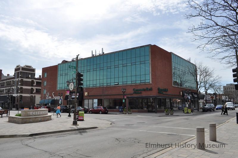 Elmhurst Square Building at the southeast corner of N. York Street and Schiller Street. Tenants include Community Bank of Elmhurst, Cottage Hill Diamonds, and Kan Ya Ramen.Photograph Details