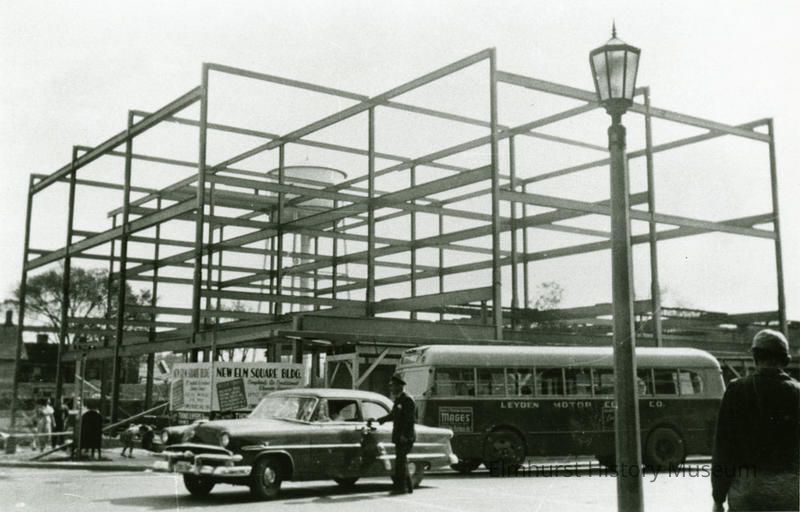 Ink script on the back reads "York & Schiller / Construction of Elm Square Bldg. / 10/10/53 / neg 3207-1."
