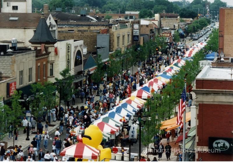 View of Elmfest street festival looking north at downtown Elmhurst on N. York Street.Photograph Details