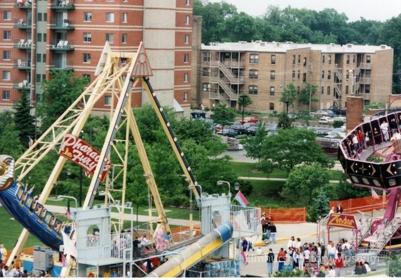 Carnival rides at Elmfest street festival in downtown Elmhurst
