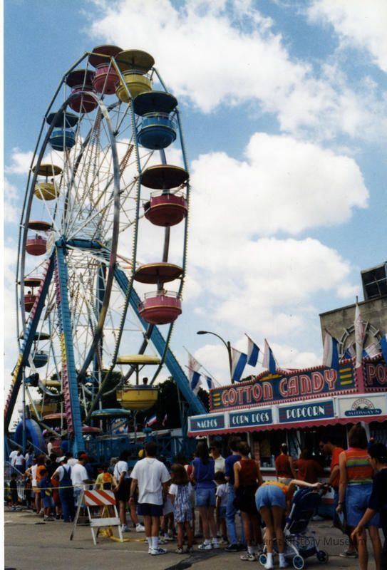 Concession stands and Ferris Wheel at Elmfest street festival in downtown Elmhurst.Photograph Details