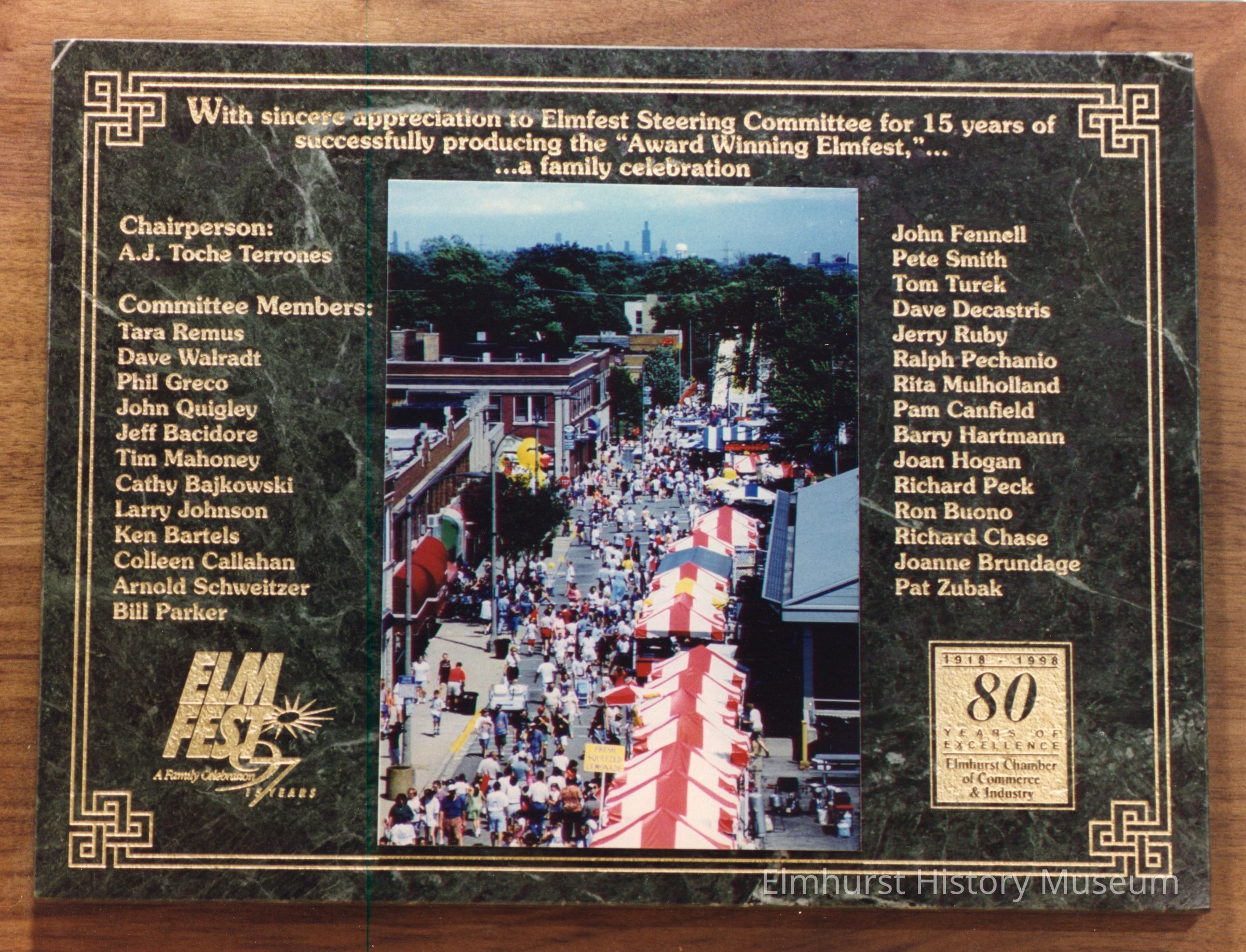 Elmfest Steering Committee PlaqueEntry/Object ID