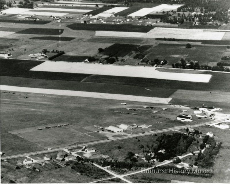 Aerial view of Elmhurst Airport on Lake Street and surrounding area