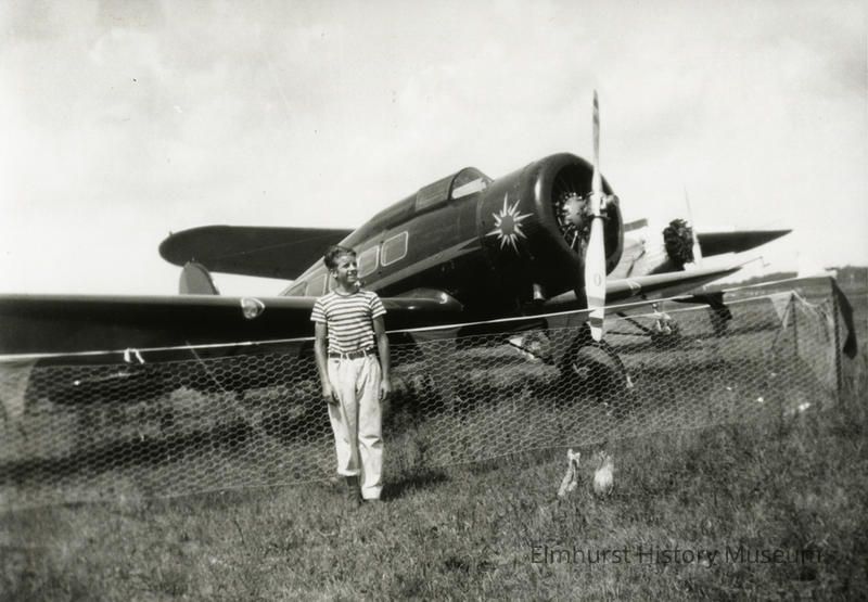 A hand-built, unfinished airplane made with an automobile engine at Elmhurst Airport.Photograph Details