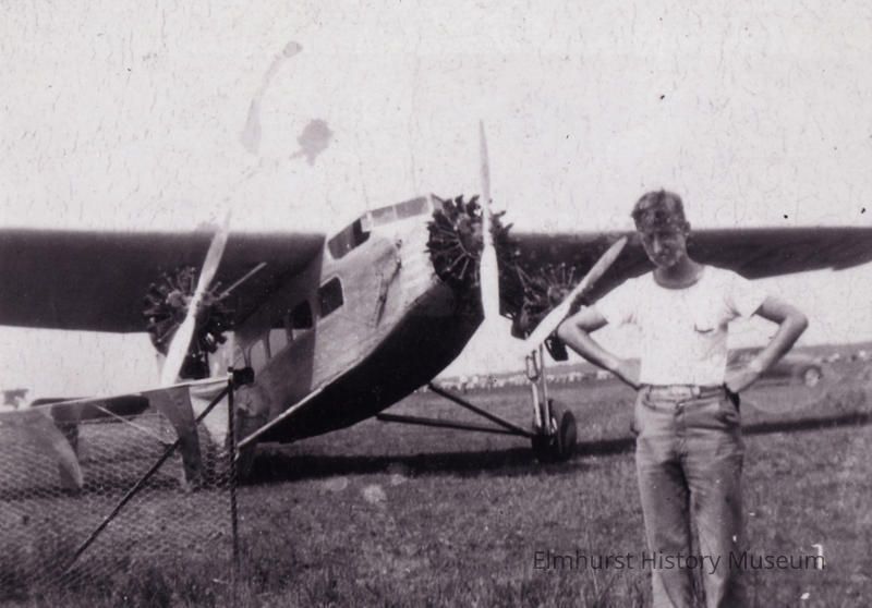 Spectator Ted Szalinski next to a Ford Trimotor at an airshow at Elmhurst Airport over Labor Day weekendPhotograph Details