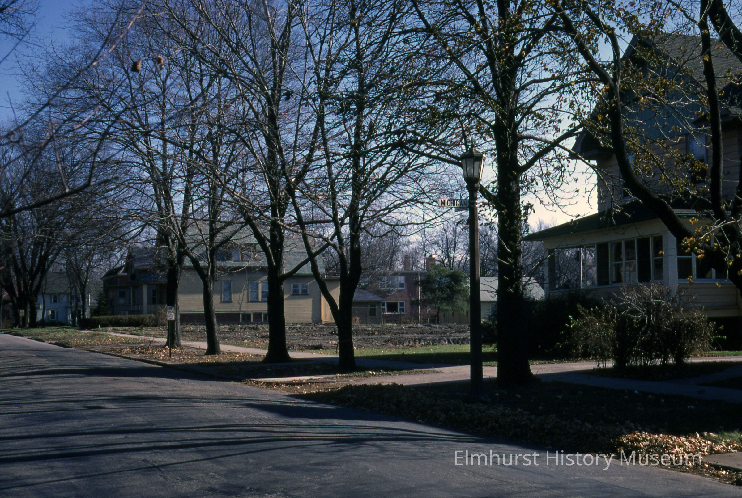 Elmhurst Avenue at Michigan Street looking southeast to where a new parking lot for Jewel Grocery Store is being constructed.Photograph Details