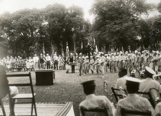 Boy Scout ceremony in Wilder Park to celebrate Elmhurst's Centennial.Photograph Details