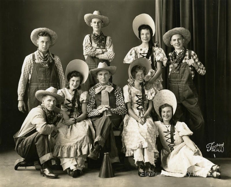 Penciled on back: Ozark Square Dancers Written in blue ink on back: Guy Colby and his Ozark Exhibition Square Dancers / Entertainers in Elmhurst Centennial Pageant, 1936 Stamped on back: Elmhurst Historical Museum