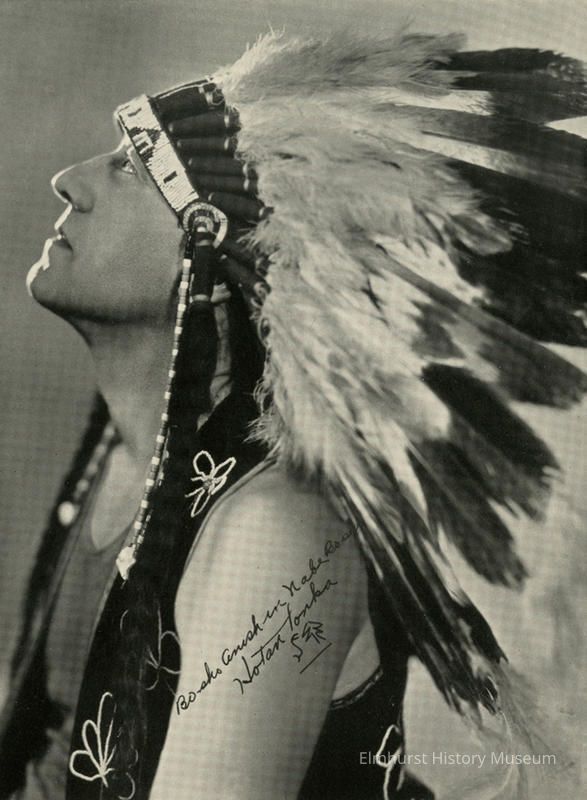 Written on man's arm: Bosko Anish in Nabe Reosh / Hotan Tonka / (pictographs) Penciled on back: Jack Rohr, Producer, Elmhurst Cent. Pageant