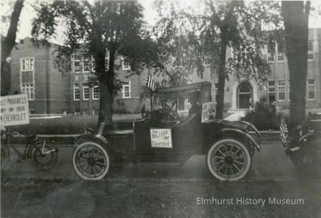 Car with "The Belle of 1911 Chevrolet" Elmhurst Centennial parade, June 1936.