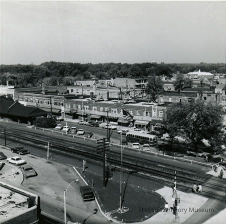 View of Elmhurst showing Chicago & North Western railroad tracks and station, looking northwest from the top of the Elmhurst National Bank building.Photograph Details