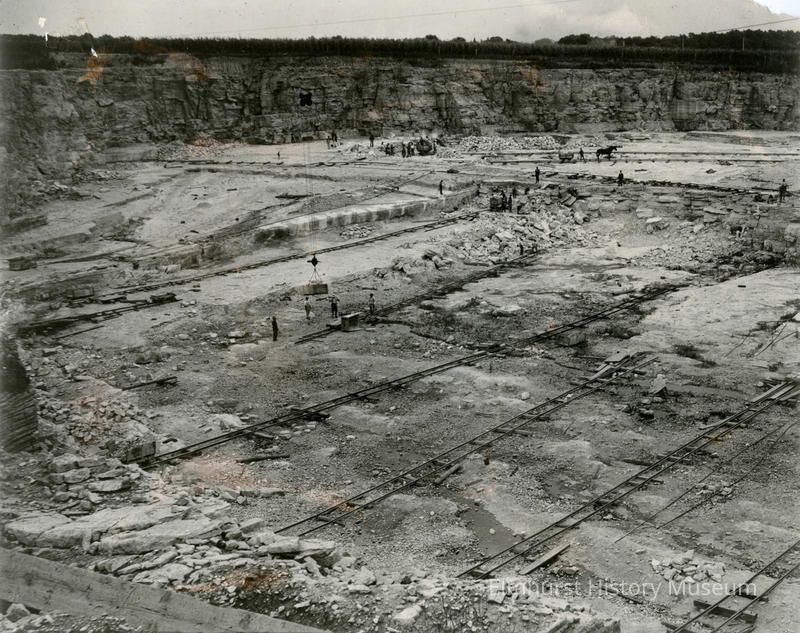 Workers laying rail track in the Elmhurst-Chicago Stone QuarryPhotograph Details