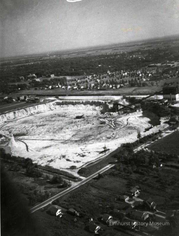 Aerial view of the Elmhurst-Chicago Stone Co. looking southeast. The quarry is in the center of the image.Photograph Details