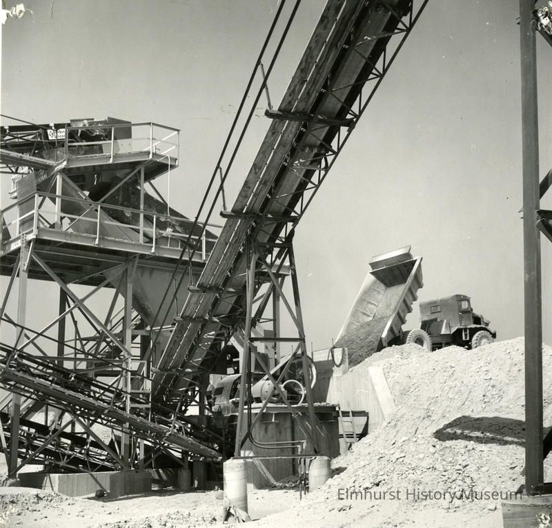 Truck dumps stone near the elevator in the Elmhurst-Chicago Stone Quarry
