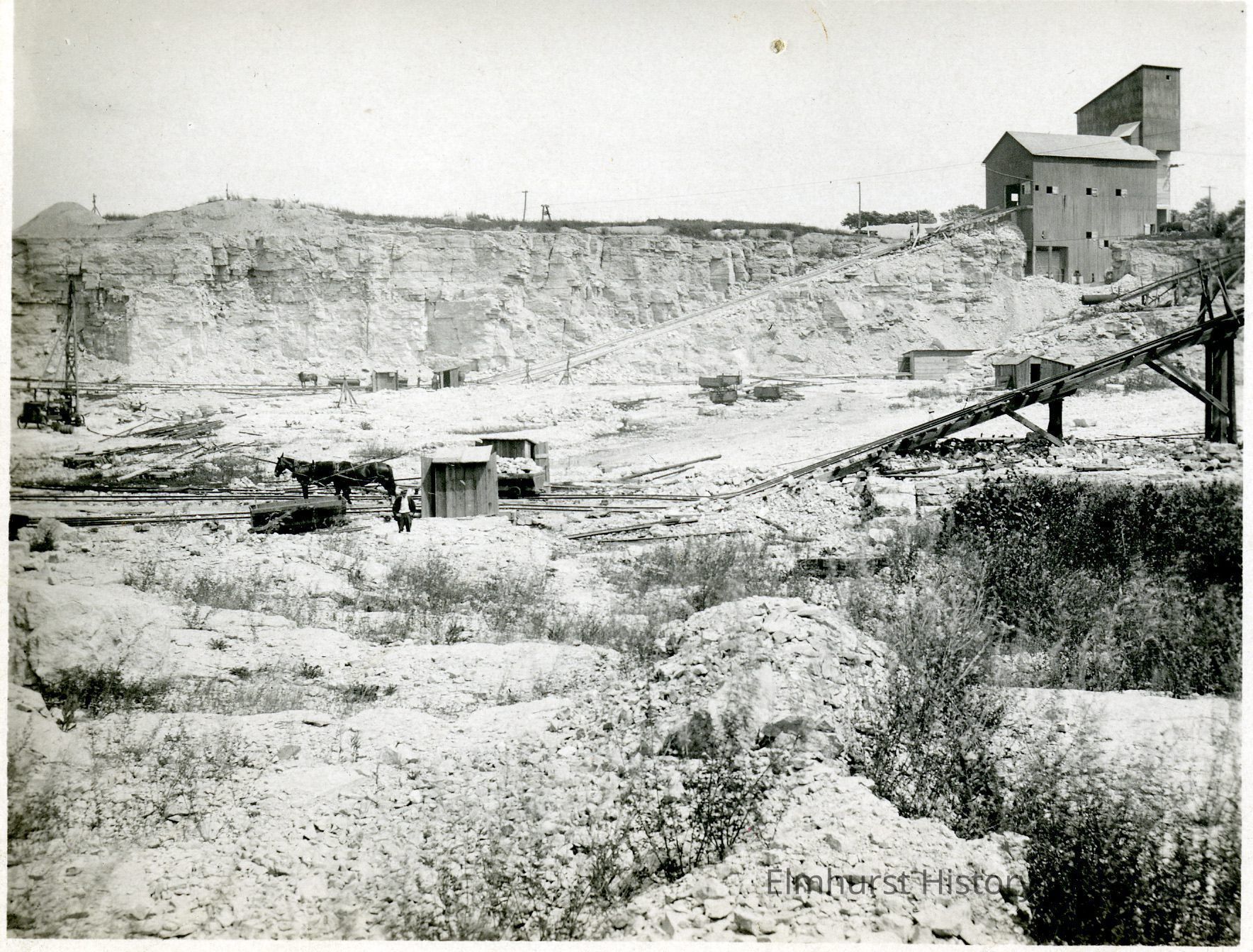 Postcard photograph of operations at the Elmhurst-Chicago Stone Company Quarry