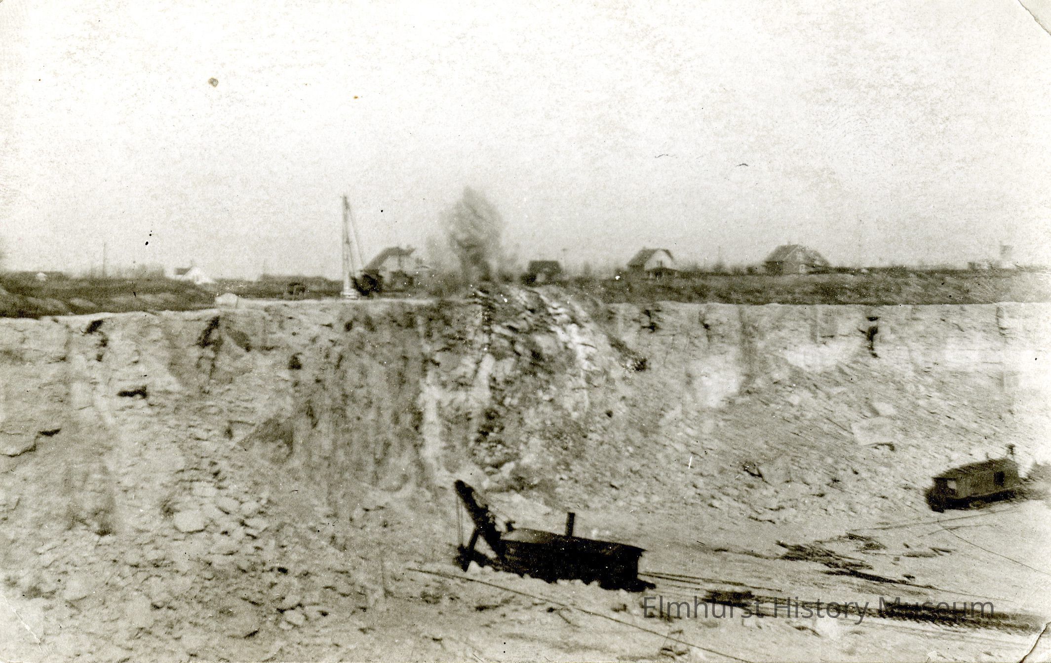 View of a steam shovel in action at the Elmhurst Chicago Stone Quarry.