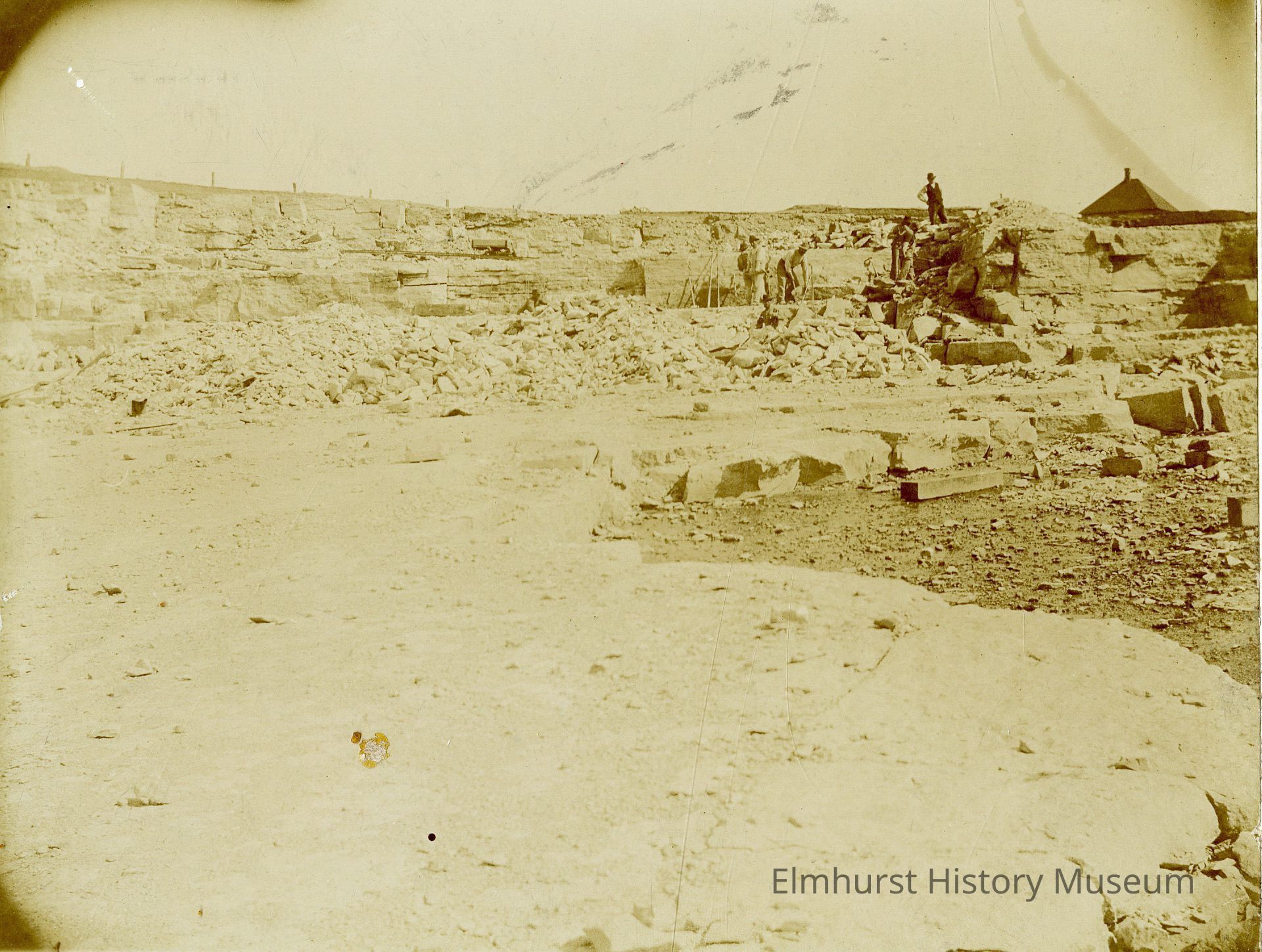 View of workers at the Elmhurst Chicago Stone Quarry.