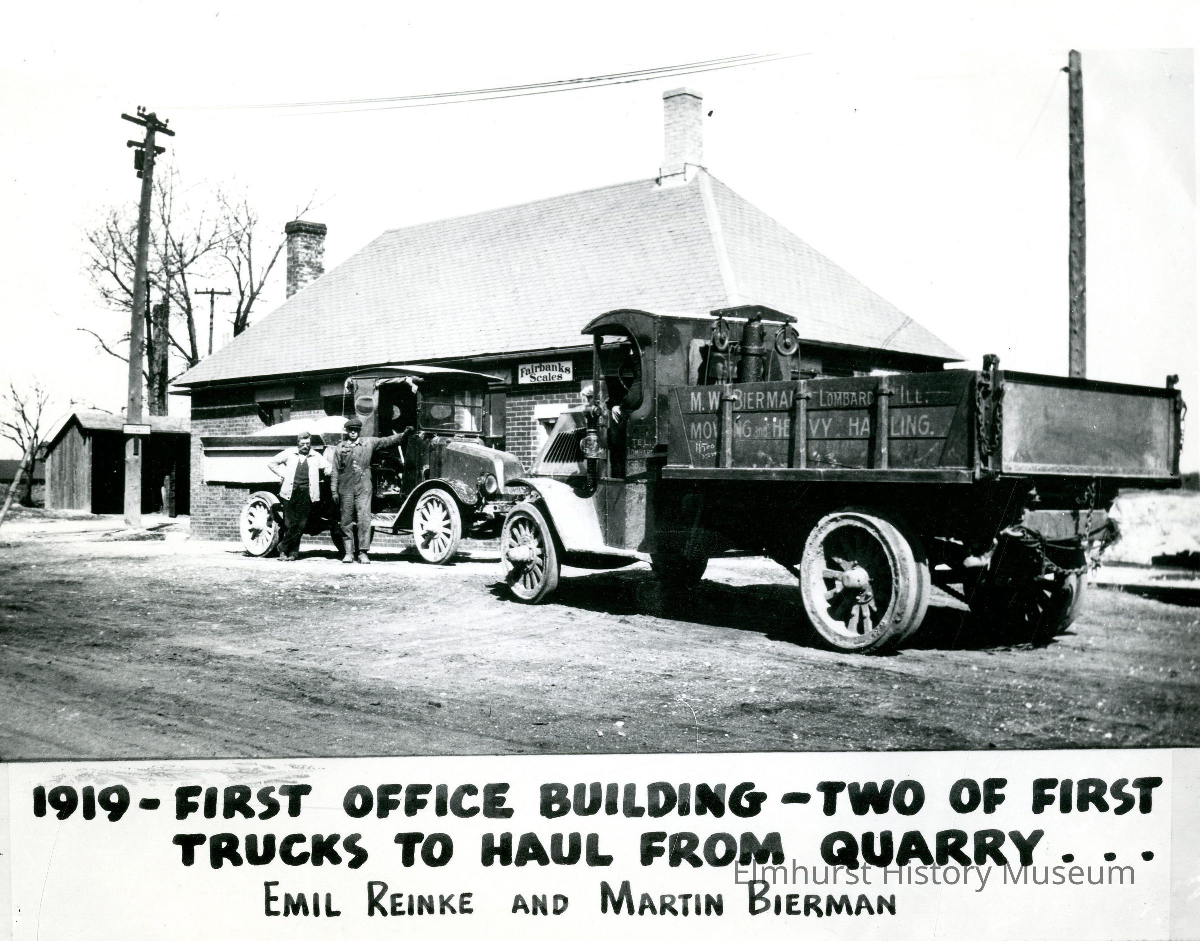 Elmhurst Chicago Stone Quarry trucks at a company office building.Photograph Details